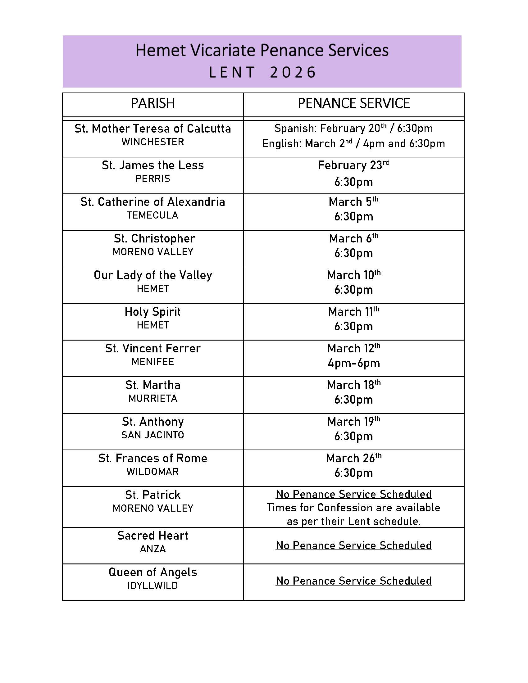*The following Church Calendar below is updated every Friday and is Subject to Change