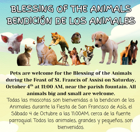 11am Blessing of The Animals in Fountain Area